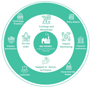 ММСП в агропродовольственной перерабатывающей промышленности. К участию в проекте приглашается широкий круг ММСП, таких как предприятия, занимающиеся консервированием фруктов и овощей, производством напитков, переработкой сухофруктов, кондитерских изделий, молочных продуктов, а также садоводством, производством фруктов и овощей.